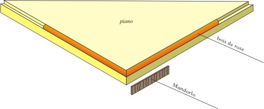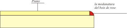 A incollaggio avvenuto, freseremo il bois de rose, o lo arrotonderemo con il pialletto dandogli la sagoma raffigurata nel disegno. Ultimata la modanatura, passeremo ad incollare la bordatura