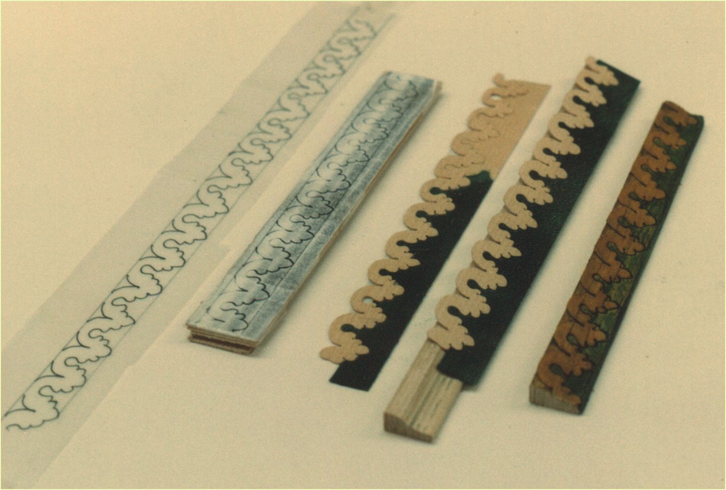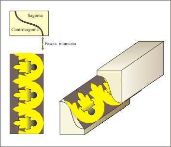 parte del motivo intarsiato verrà, (dopo il taglio con il traforo,)