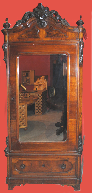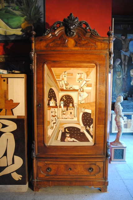 Mi sono ritrovato tra le mani, come in tanti ci ritroviamo, mobili antichi dei nostri nonni, che non hanno una sua funzione d’uso adeguata alle esigenze attuali e hanno perso per il momento il suo valore nel contesto attuale di arredare le nostre case. mi è venuta l'idea di realizzare una tarsia prospettica ctando Escher al posto dello specchio che serviva all'armadio dei nonni .